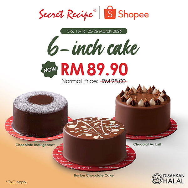 , you can conveniently have your chosen cakes delivered to you or pick it up at your nearest Secret Recipe cake shop branch.