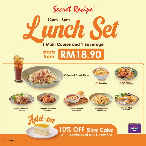 Get 1 Main Course and 1 Beverage of your choice for only RM20.90