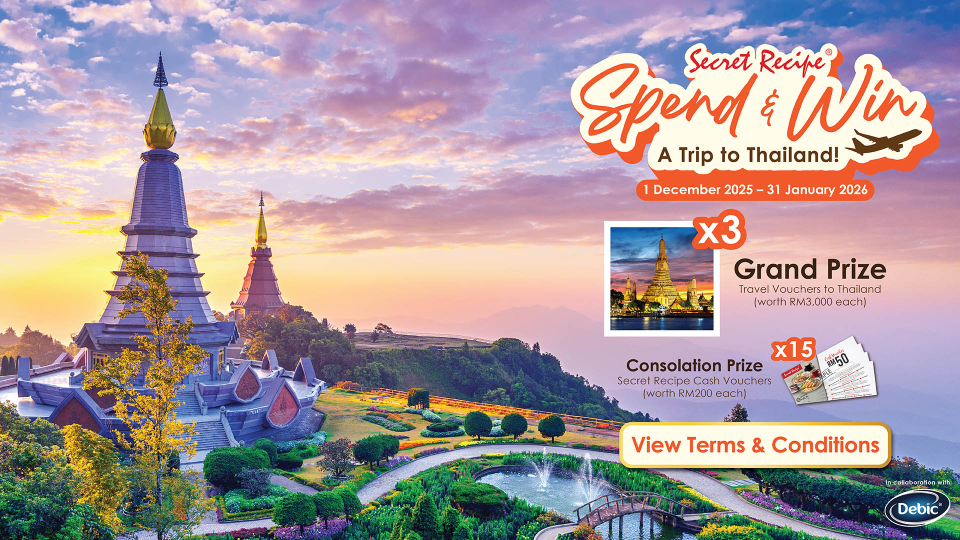 I agree to be bound by the terms and conditions of the “Spend & Win a Trip to Thailand” Contest (the “Contest”) and consent to the collection, processing, and use of my personal data by Secret Recipe Malaysia. I understand that all photographs, personal information, and names submitted for the Contest remain the property of Secret Recipe Malaysia.